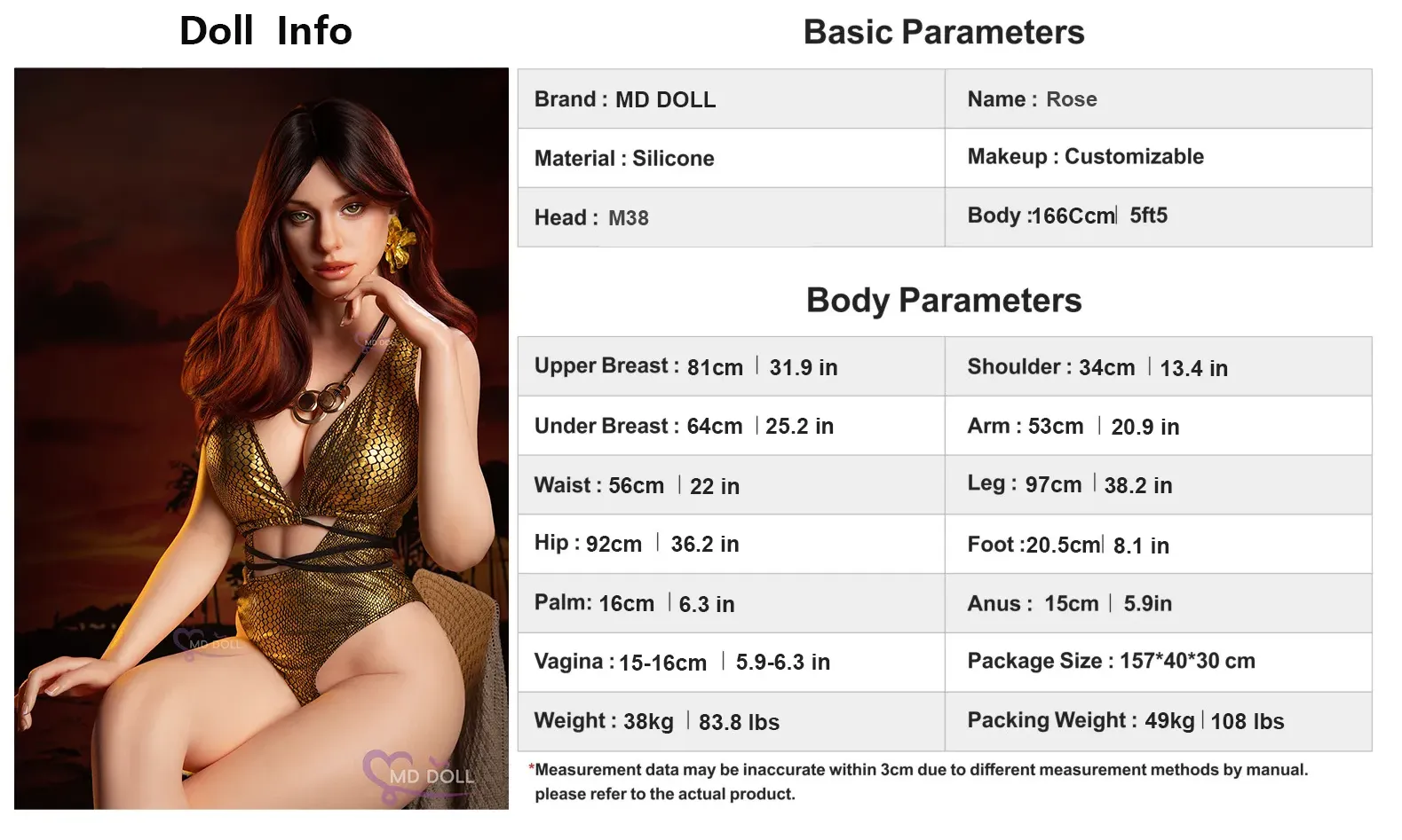 MD Doll | Rose - 5ft 5/166cm D-Cup ROS M38 Silicone Sex Doll